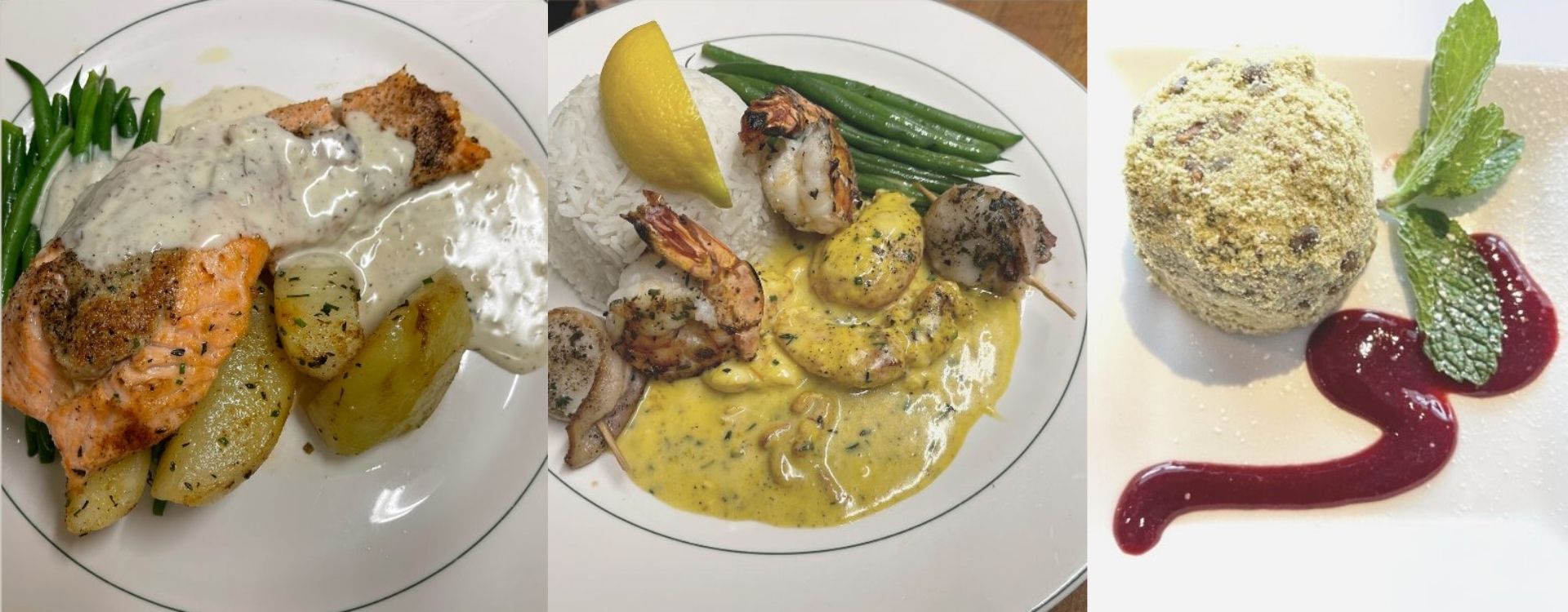 WITH CARAMELIZED APPLE IN A PORT WINE CREAM( SERVED WITH MASHED POTATO AND VEG,)